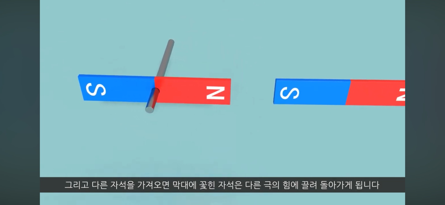 위의 글과 같이 같은 극끼리는 밀어내고 다른 극은 당기기 때문에 계속해서 옆의 자석을 바꾸면 막대에 꽂힌 자석은 계속 회전하게 됩니다.